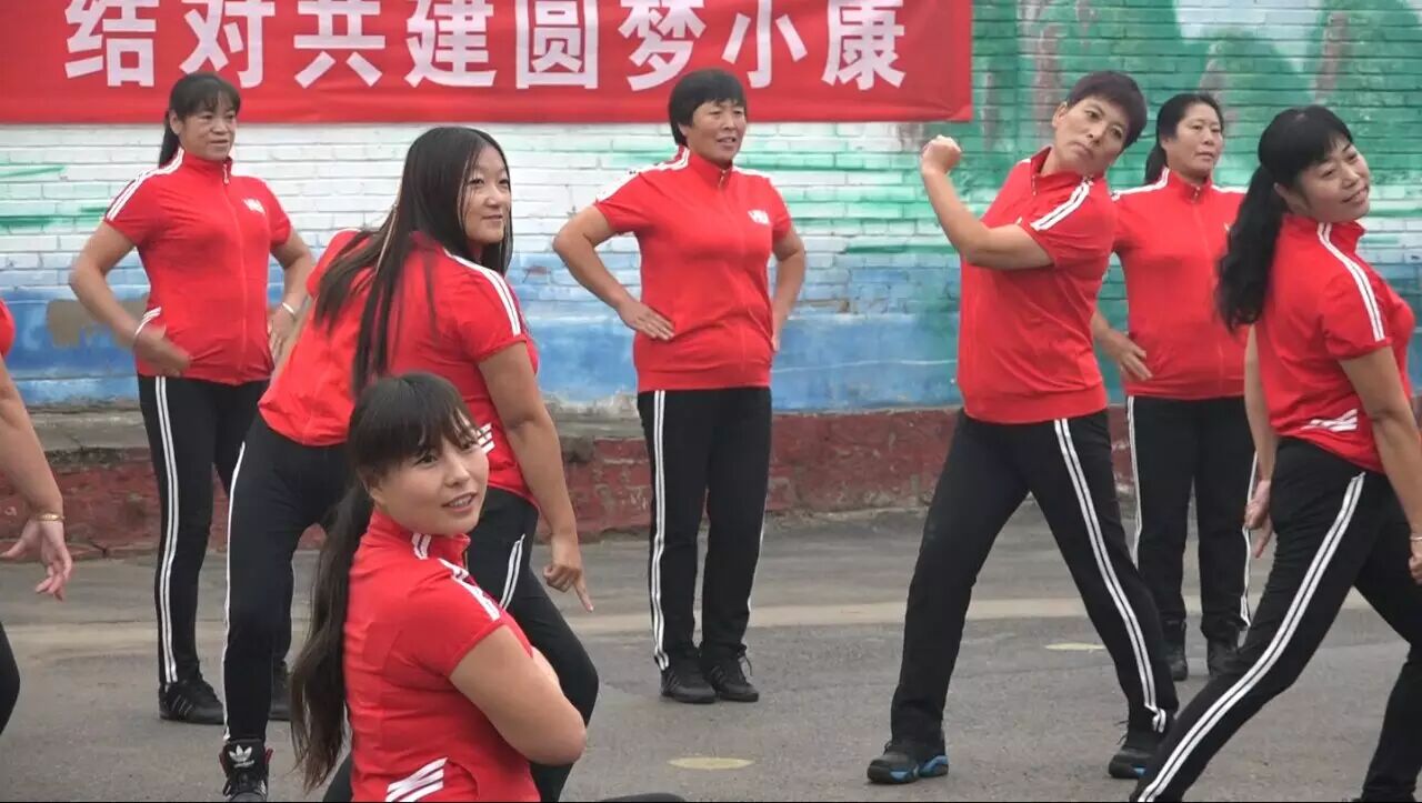 舞蹈隊(duì)的婦女們有些等不及了,站得直直的,有的還抖落抖落胳膊,只等幫扶儀式一結(jié)束,一起歡快地跳起廣場(chǎng)舞,表達(dá)喜悅之情。